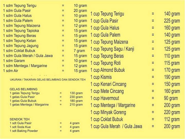 Sendok gram berapa konversi susu takaran gula pasir teh gelas manis kental bahan timbangan temperatur istilah dapur ibu sdm tabel