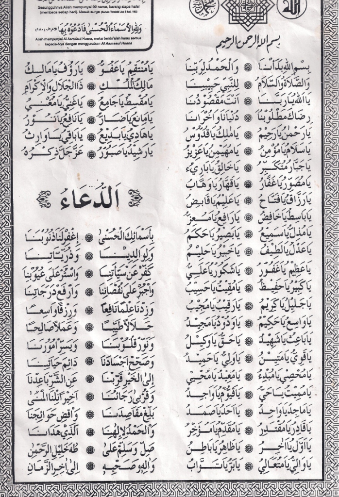 Asmaul husna latin lagu. Husna asmaul lagu teks beserta wadoohkan