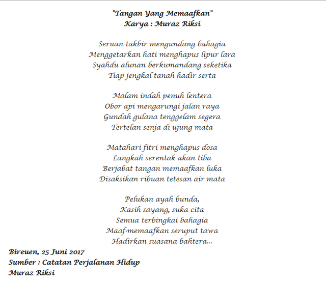 Puisi idul fitri memaafkan lebaran lahir kemenangan batin anisayu. Memaafkan tangan puisi pikiran versi